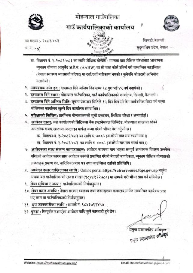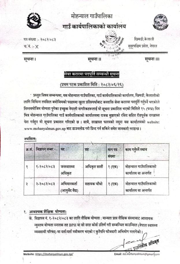 सेवा करारमा पदपूर्ति सम्बन्धी सूचना ।